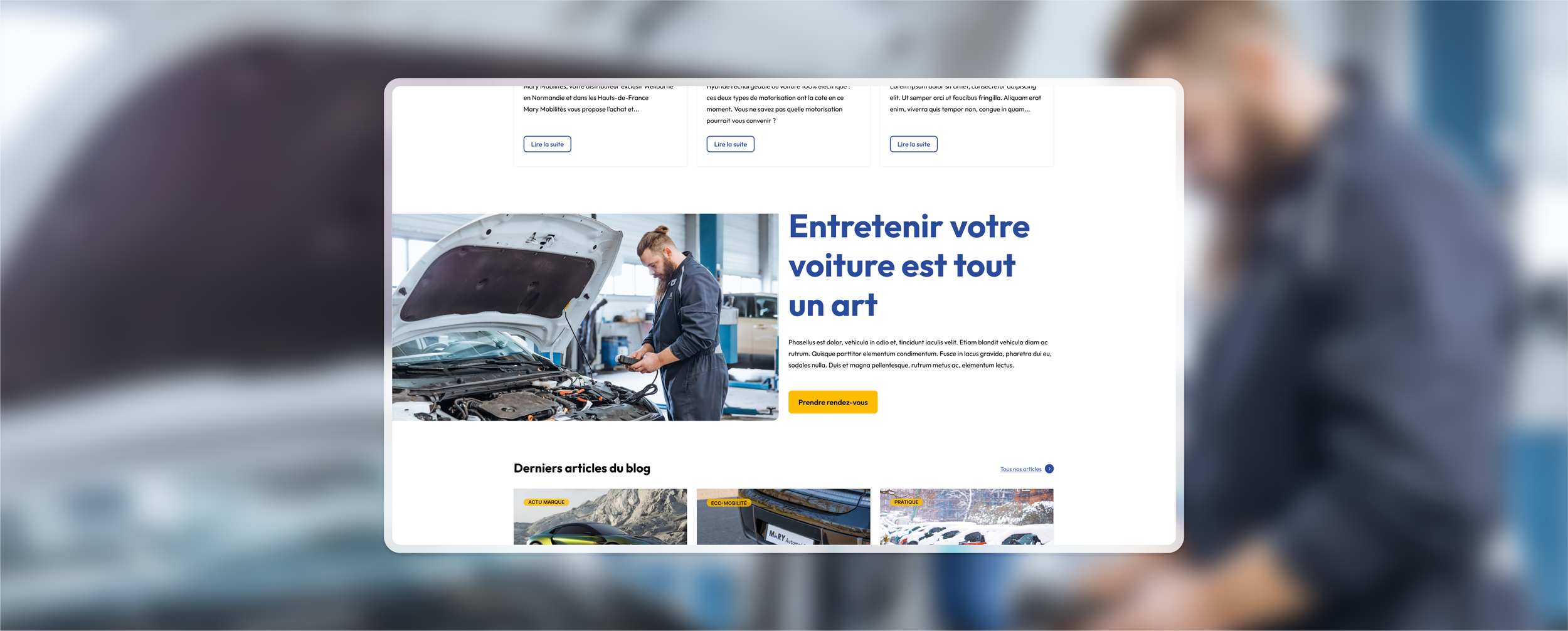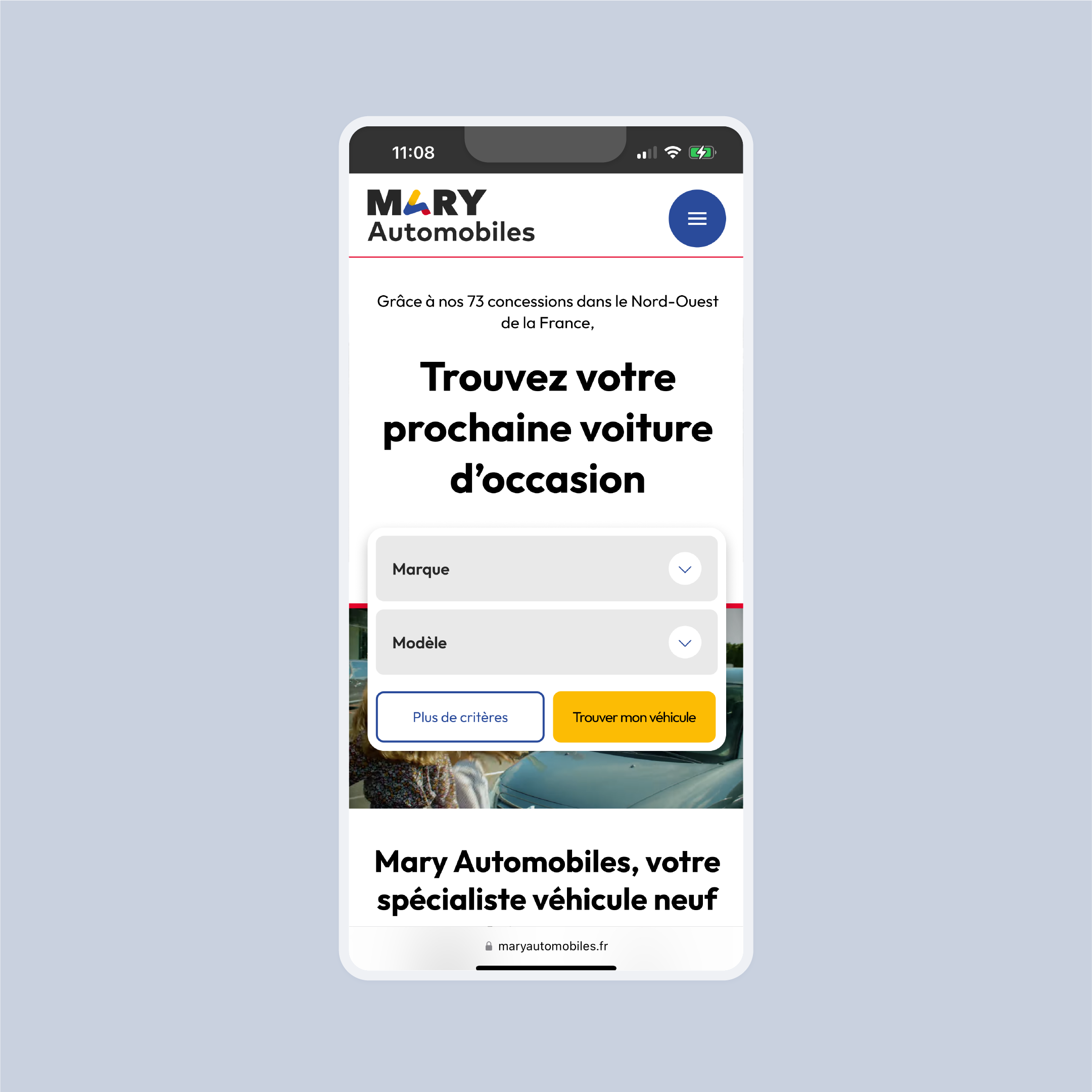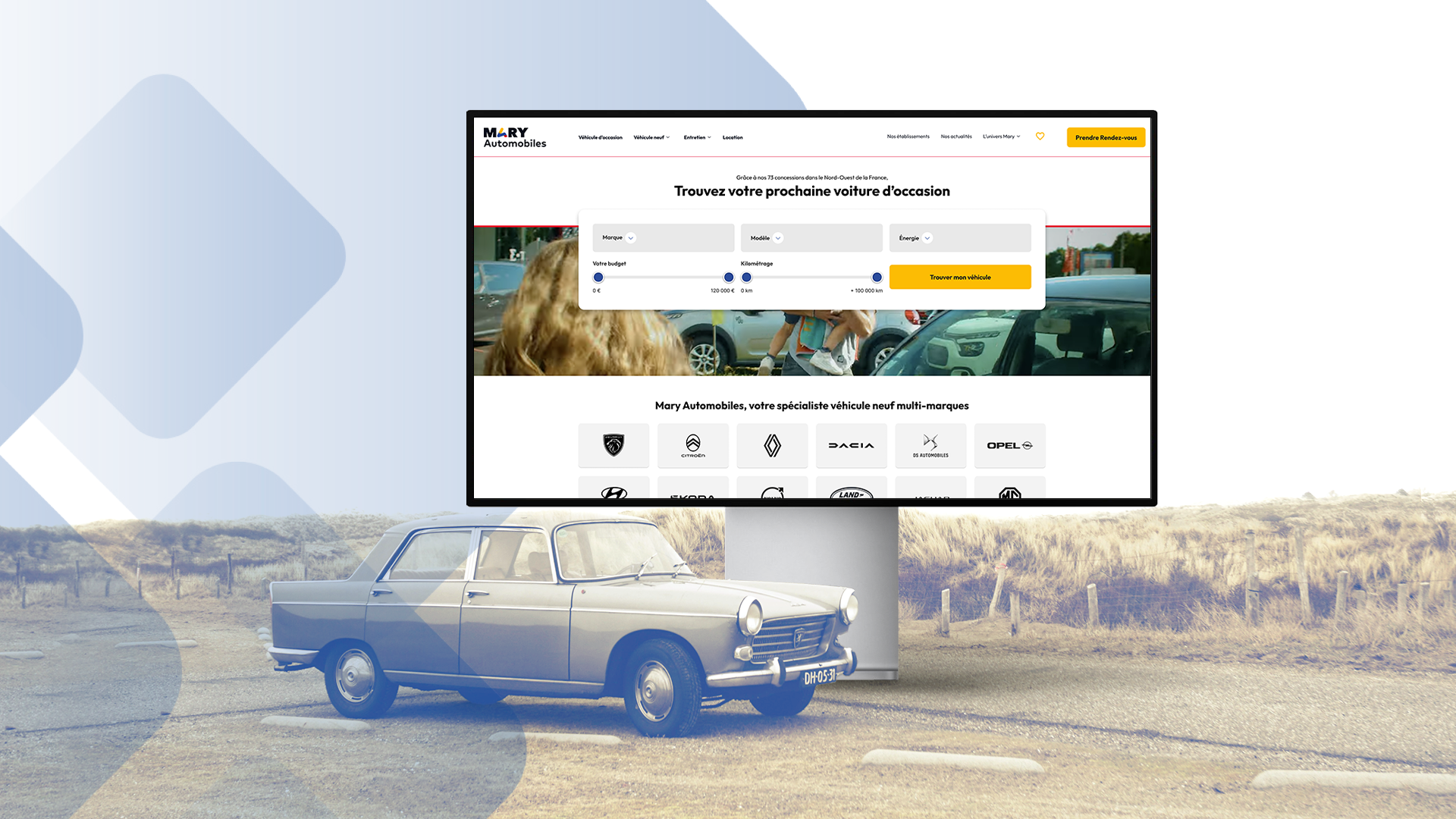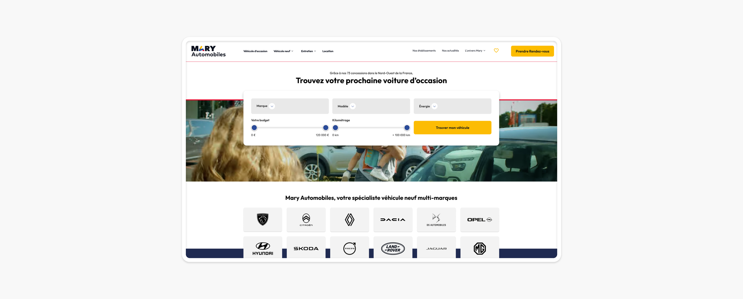 Depuis plus de 27 ans, une équipe de 2000 talents et un impressionnant bilan de 40 000 véhicules vendus en 2023, Mary Automobiles s'est imposé comme une force dominante avec plus de 70 concessions dans le Nord-ouest de la France. Spécialisé dans la distribution automobile, Mary Automobiles avait donc besoin d'un nouveau site web aussi impressionnant que ses chiffres. En collaboration avec les équipes marketing, nous avons entrepris la refonte du site maryautomobiles.fr, en veillant à offrir une expérience utilisateur optimale tout en maintenant un système graphique en accord avec l'identité développée pour le Groupe Mary.