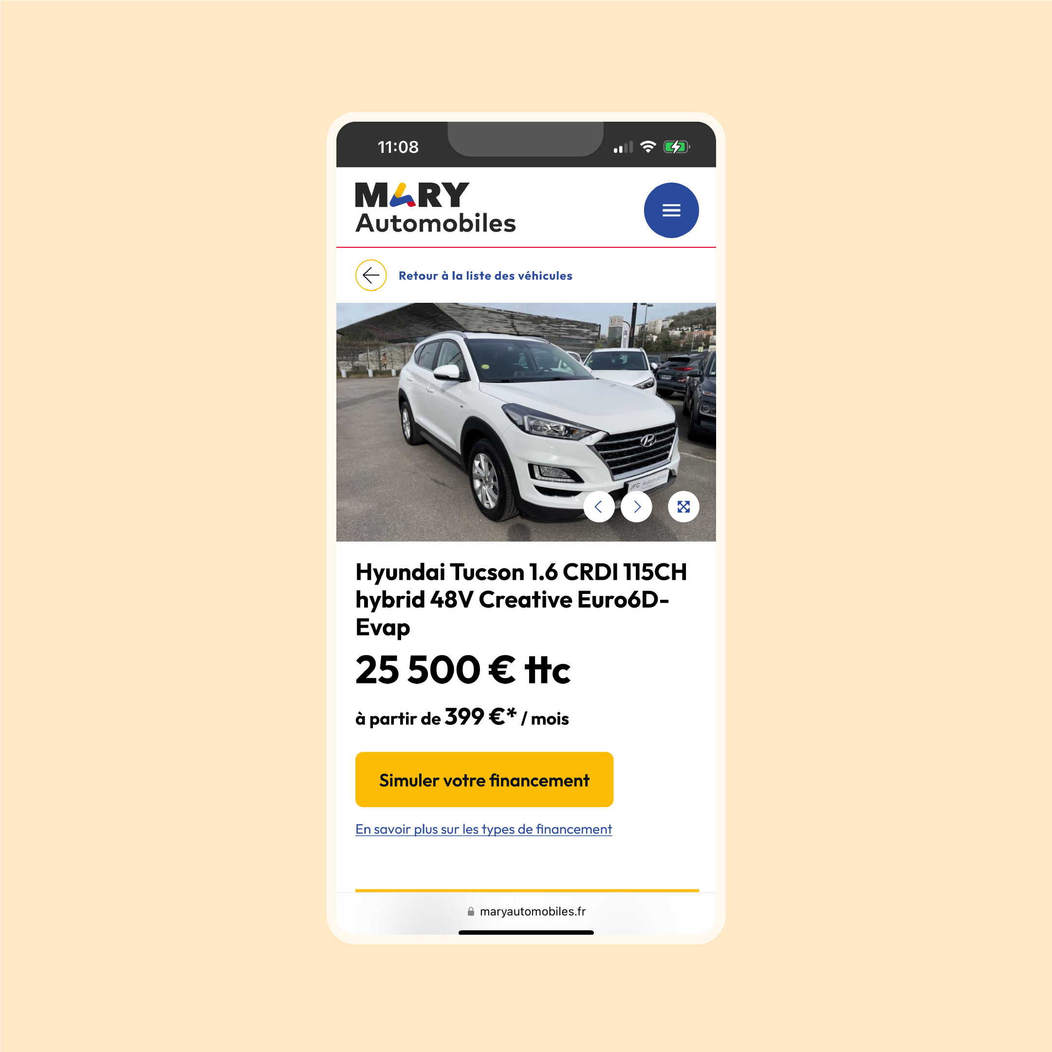 Notre succès a été possible grâce à l'expertise combinée de l'ensemble des équipes. Marketing et développement chez Mary Automobiles, ainsi que ma propre contribution en matière de conception UX et UI.