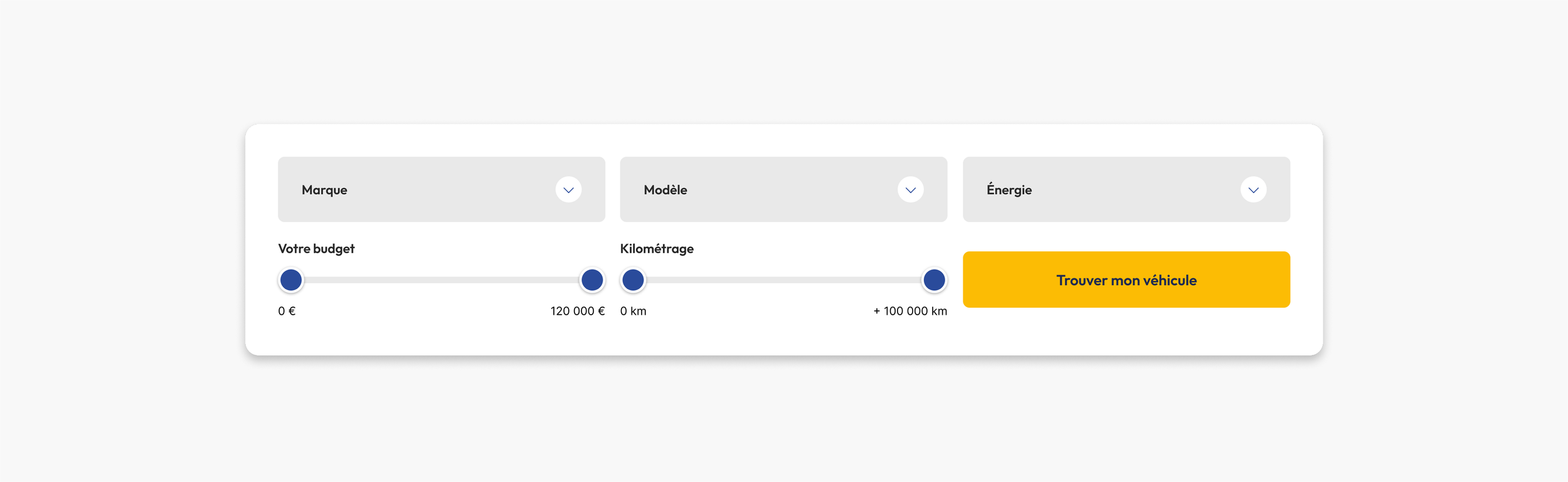 Véhicules d'occasion : en plus de présenter les véhicules nous devions permettre aux utilisateurs d'accéder rapidement à une liste adaptée à leurs besoins et envies.